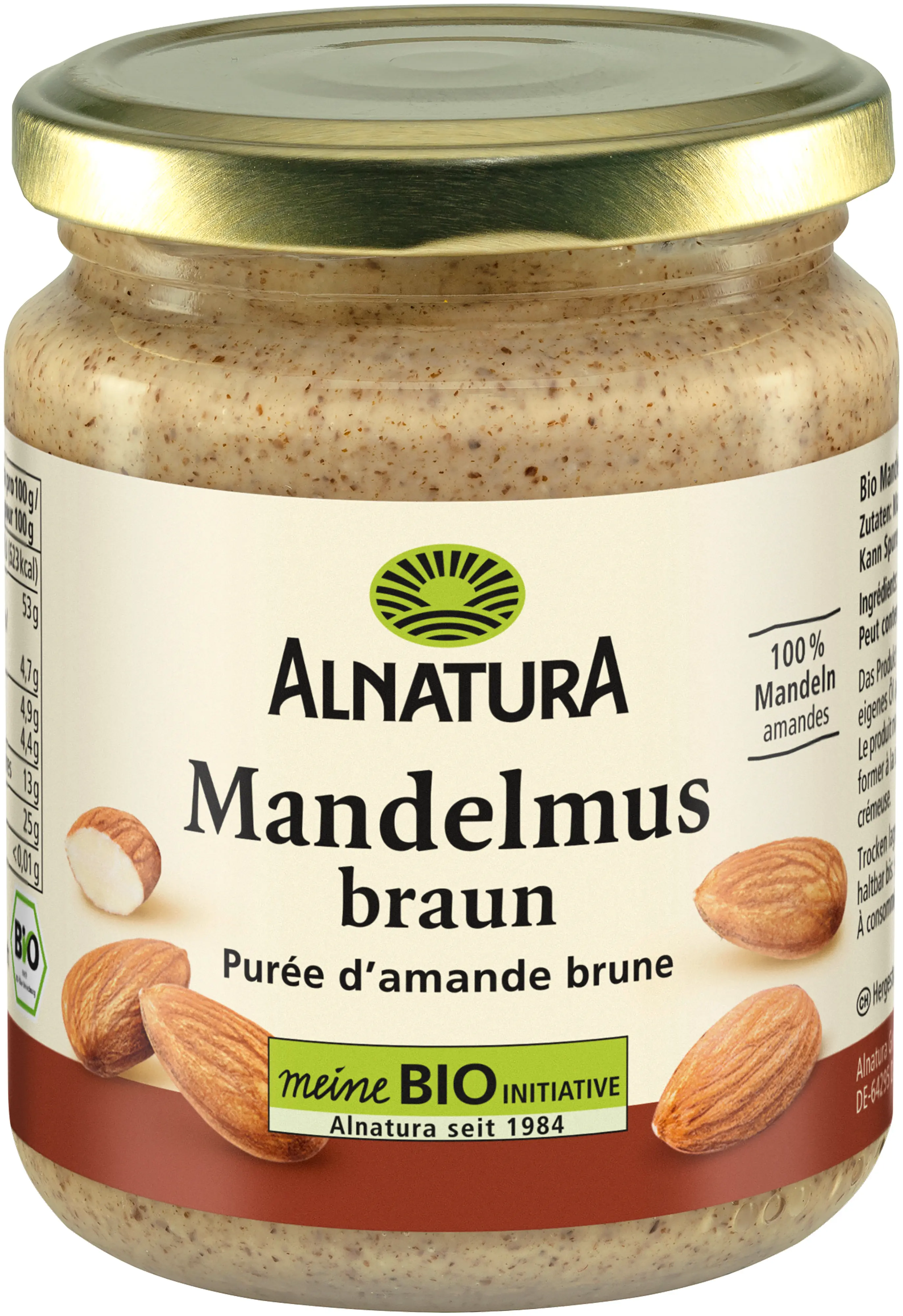 A mandula püré egy remek finomítási tipp - szószok, öntetek, levesek, zöldséges ételek, curryk vagy forró italok, például kakaó és tej mézzel! Az összesnek krémesebb állagot kölcsönöz, valamint jellegzetes mandula ízekkel kényezteti az ízlelőbimbókat: a sötét püré kizárólag hámozatlan mandulát tartalmaz, ezáltal fűszeresebb ízű, mint a világos mandula püré. Természetesen a kedvenc péksüteményére is rákenheti. Extra plusz: Az Alnatura ezen változata 100 százalékban bio-mandulából áll, a receptúra nem igényel emulgeálószereket vagy stabilizátorokat.
