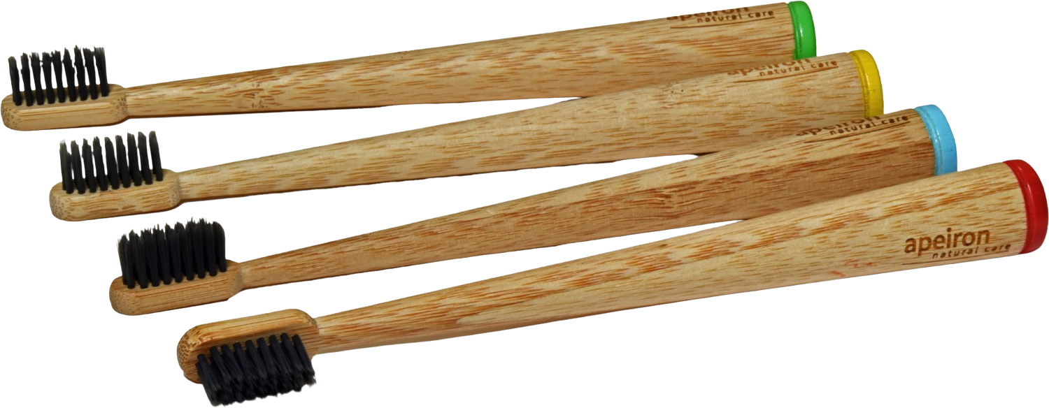 Az Apeiron innovatív fogkeféje különböző, diszkrét színjelölésekkel kapható, ezért könnyen megkülönböztethető. A nyél bambuszból készül, komposztálható és kis talpazatának köszönhetően tud állni, így többé nem lesz szüksége nem túl esztétikus fogkefetartó pohárra. A kefefej nejlonból készül, ezáltal gyengéden és alaposan tisztítja a fogakat és az ínyt.