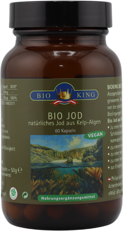 A BioKing Bio Jód az Ascophyllum nodosum makroalgából kivonva készül, amely Skócia nyugati partján, a Külső-Hebridák körüli vizekben nő. A természetes tengeri algát minősített bio minőségben gyűjtik és gondosan feldolgozzák.