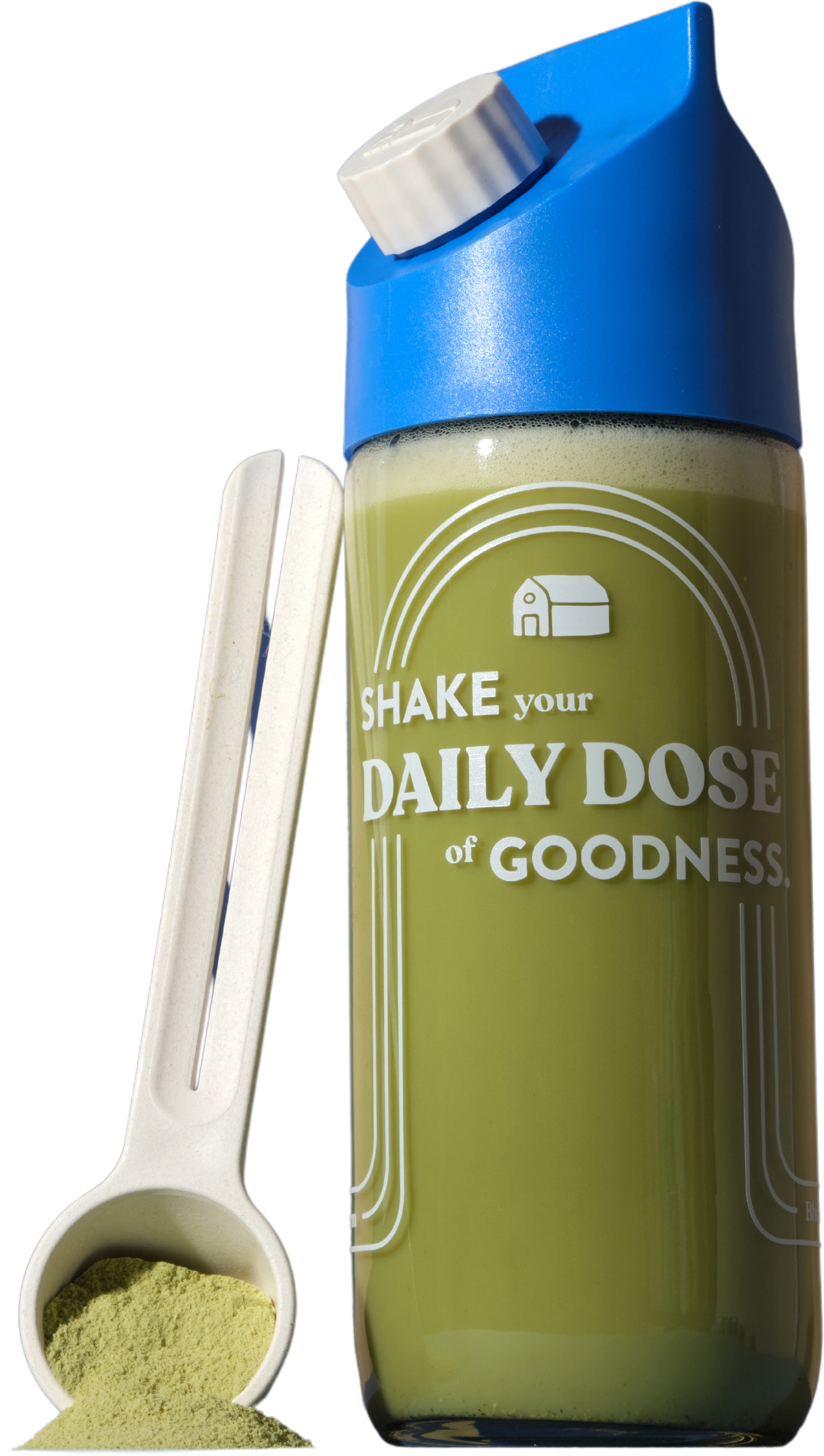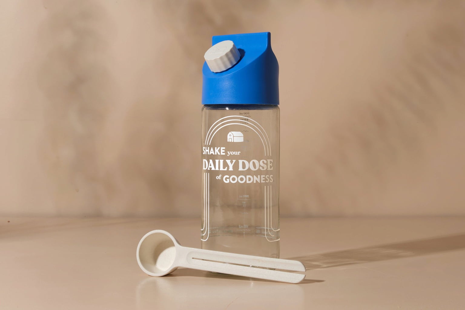 Már rázza vagy még cipeli? A praktikus Blue Farm üvegpalackkal és a hozzá illő adagolókanállal végleg búcsút mondhat a nehéz tejesdobozoknak. Készítse el kedvenc Blue Farm italporát frissen és gyorsan - otthon vagy útközben.