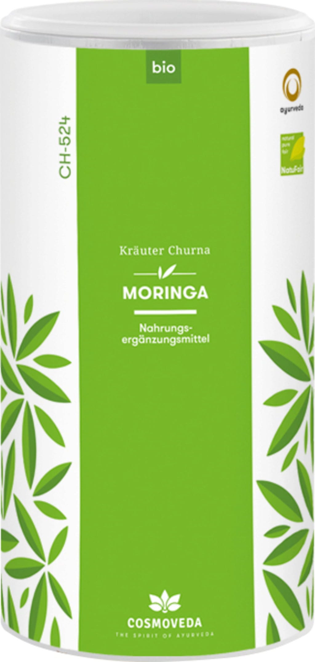 A Cosmoveda a BIO Moringa Churna termék előállításához a Moringa oleifera - más néven lóretekfa - leveleit használja fel, amelyek az indiai és a Srí Lanka-i Fair Trade és bio projektekből származnak.