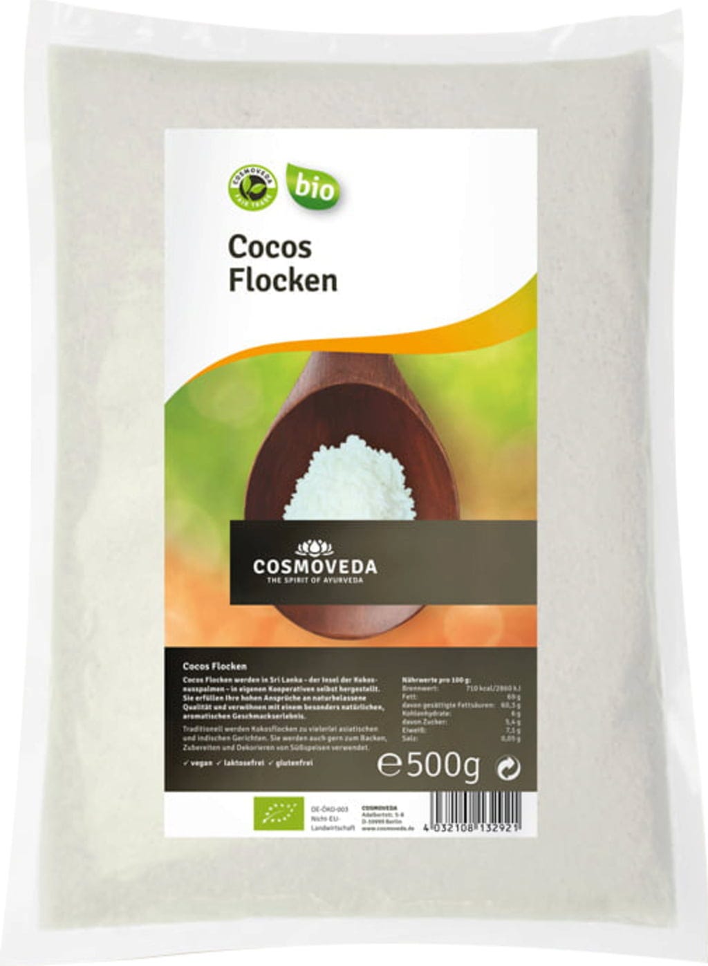 A COSMOVEDA kókuszpelyhet friss ceyloni kókuszdióból készítik. Finom illata és csábító íze által kedvelt snack is egyben. Főzéshez és sütéshez is kiváló.