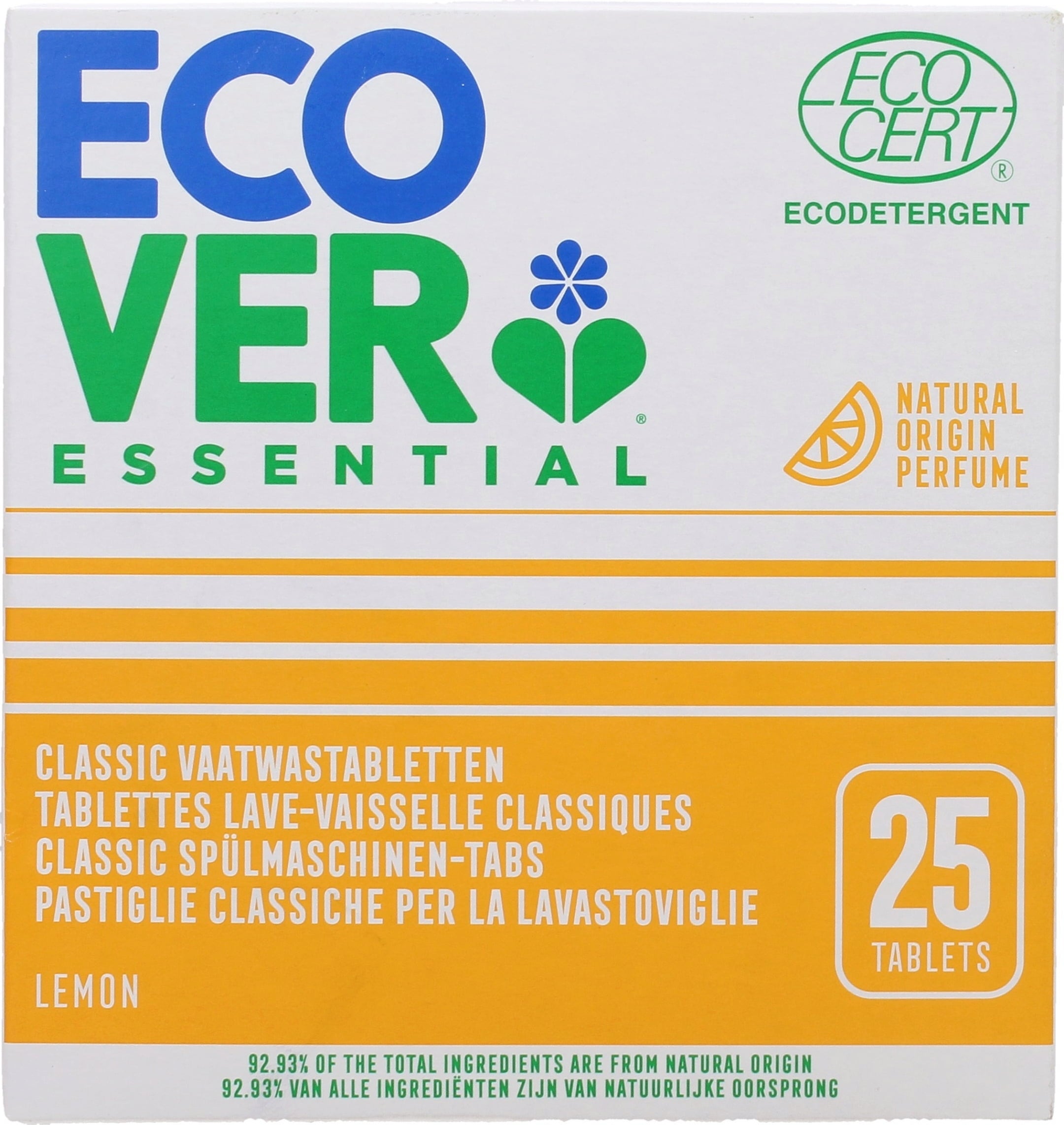 A Ecover Essential Citrom mosogatótabletta növényi és ásványi összetevői által kiváló tisztítóerővel bír. Citrusos illatú a természetes illatanyagok által.