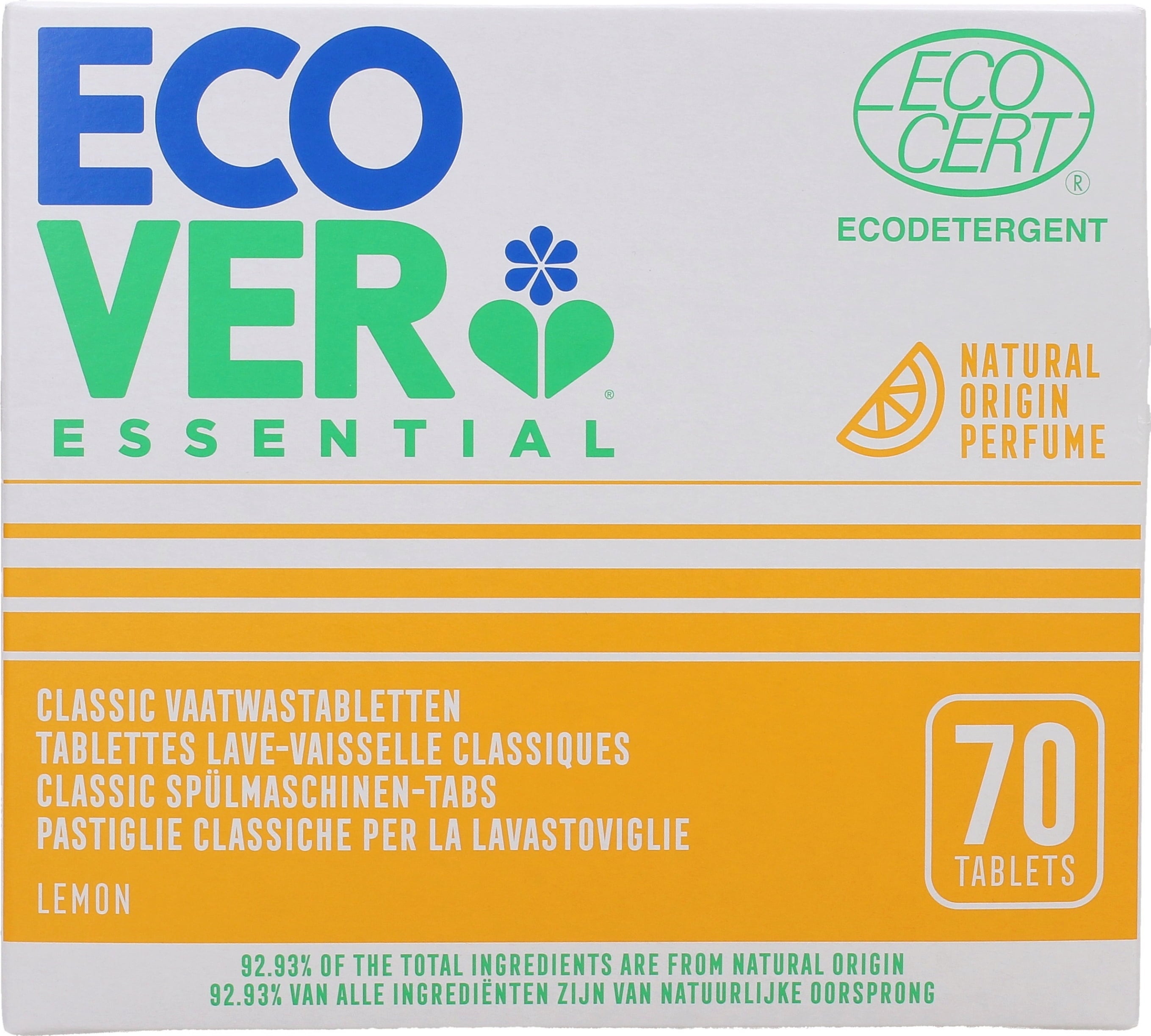 A Ecover Essential Citrom mosogatótabletta növényi és ásványi összetevői által kiváló tisztítóerővel bír. Citrusos illatú a természetes illatanyagok által.