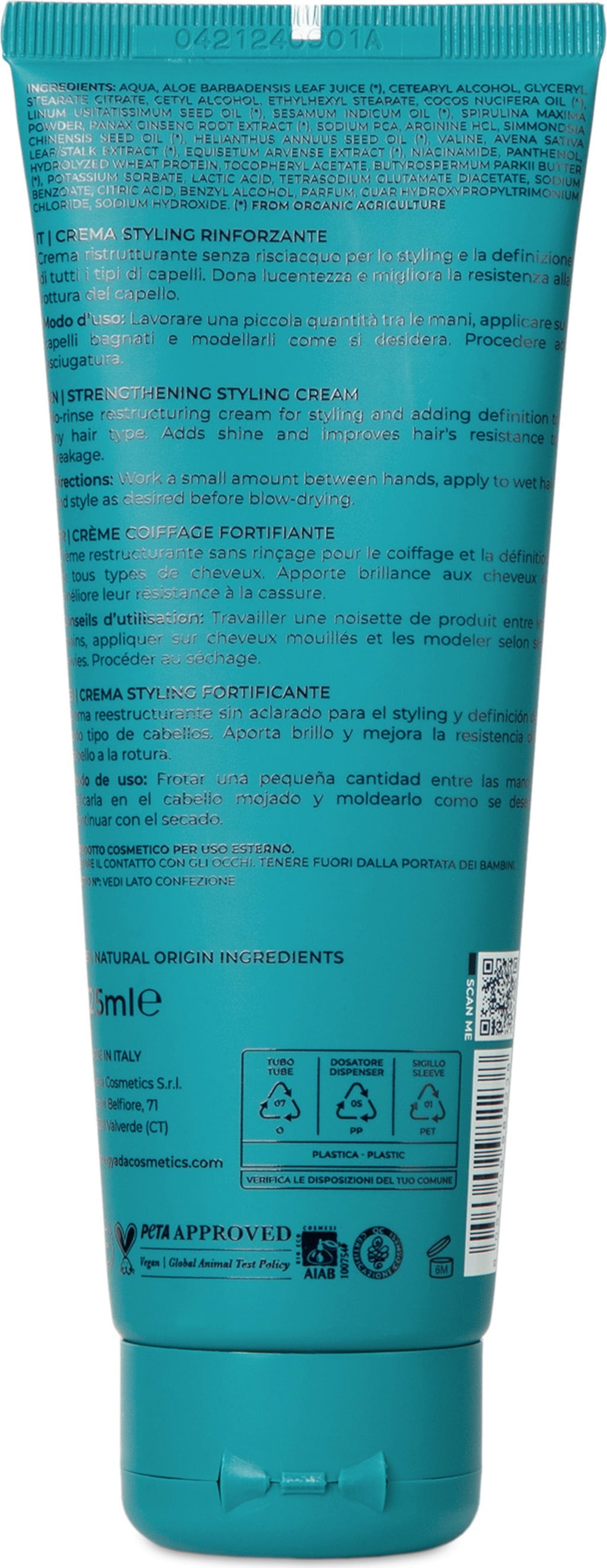 A krém vitaminokban, aminosavakban és ásványi sókban gazdag spirulinat, valamint zab, ginzeng és mezei zsurló restrukturáló növényi kivonatokat tartalmaz. Ezenkívül a növényi olajok, az aloe vera és a shea vaj védő tulajdonsággal bírnak.