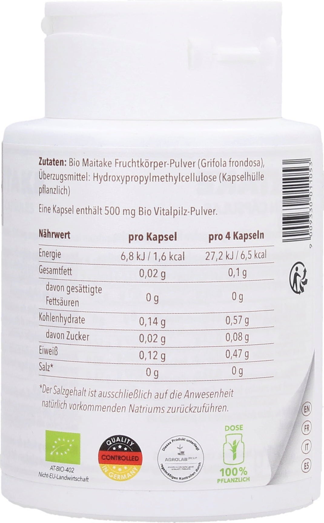A Bio Maitake gomba finoman szárított termőtestéből készült por képezi ezeknek a kapszuláknak az alapját. Sok vitamint, ásványi anyagot és nyomelemet tartalmaz. Ráadásul tisztán növényi, glutén- és laktózmentes. Ideális természetes alternatívaként.
