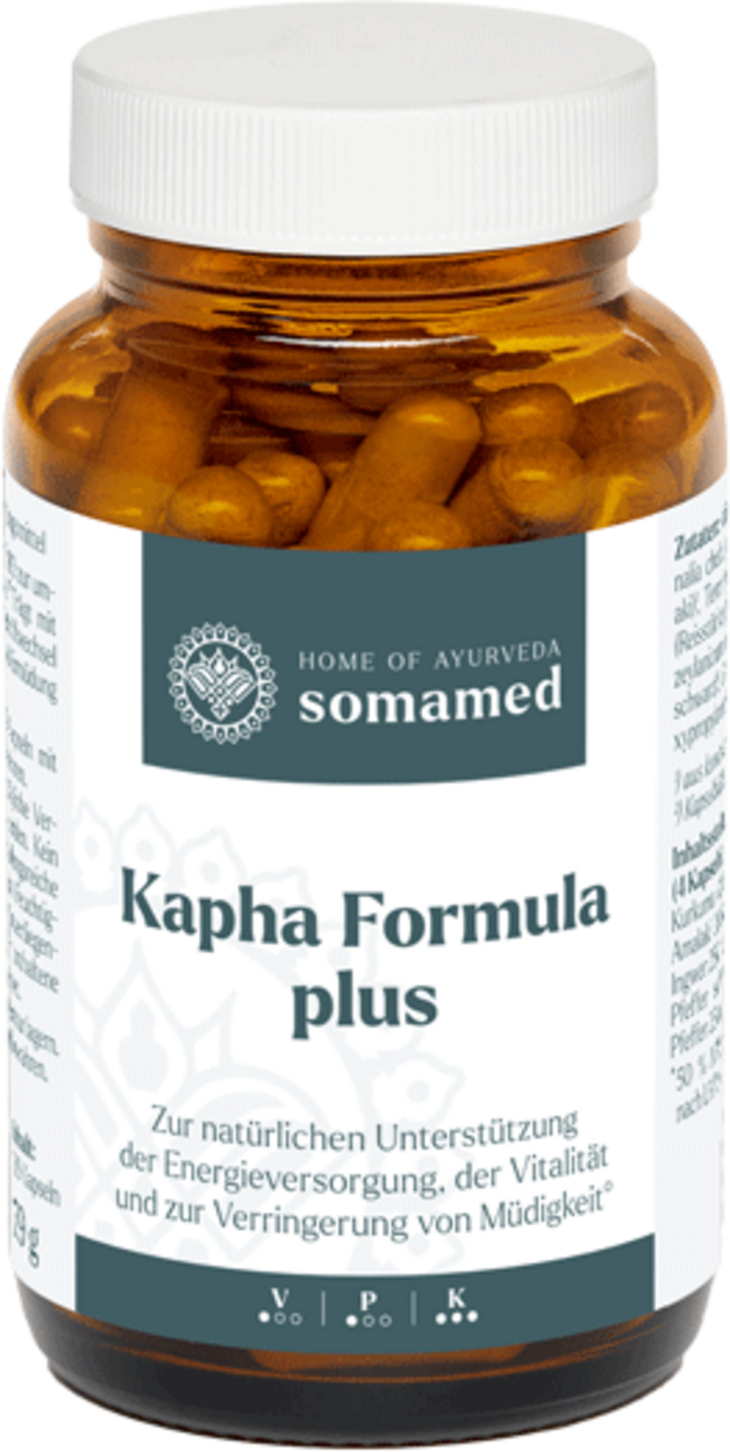 A Kapha Formula Plus formula válogatott, az ayurvédában nagyra becsült gyógynövényeket és kivonatokat kombinál a Kapha dósa harmonizálása érdekében. A formula optimális kiegészítése érdekében a válogatott növényi összetevőket B3-vitaminnal kombinálják. A B3-vitamin hozzájárul a normál energia-anyagcseréhez, valamint a fáradtság és a kimerültség csökkentéséhez.