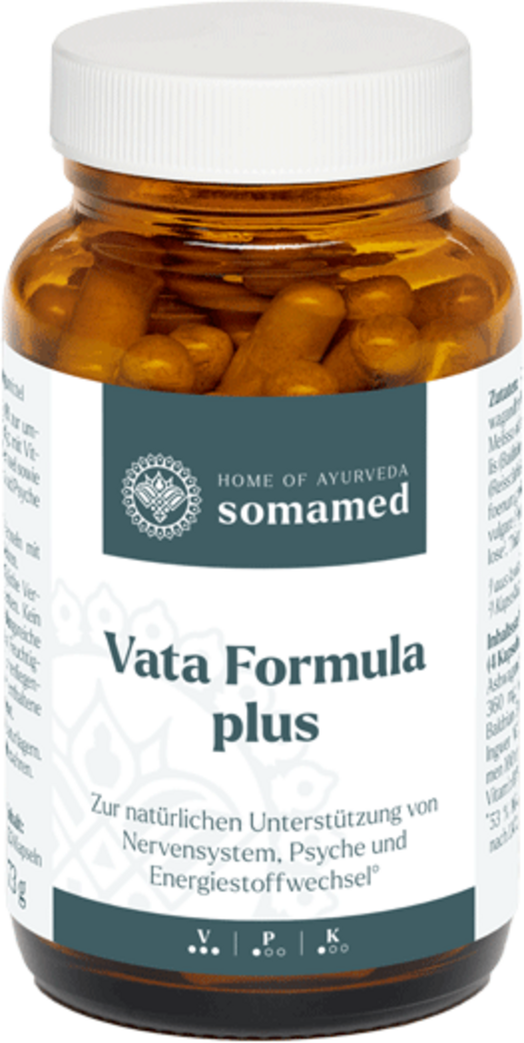 A Vata Formula Plus formulája az ayurvédában nagyra becsült válogatott gyógynövényeket és kivonatokat ötvözi a Vata dósa harmonizálása érdekében. A formula optimális kiegészítése érdekében a válogatott növényi összetevőket B1-vitaminnal kombinálják. A B1-vitamin hozzájárul az idegrendszer és a psziché normál működéséhez.