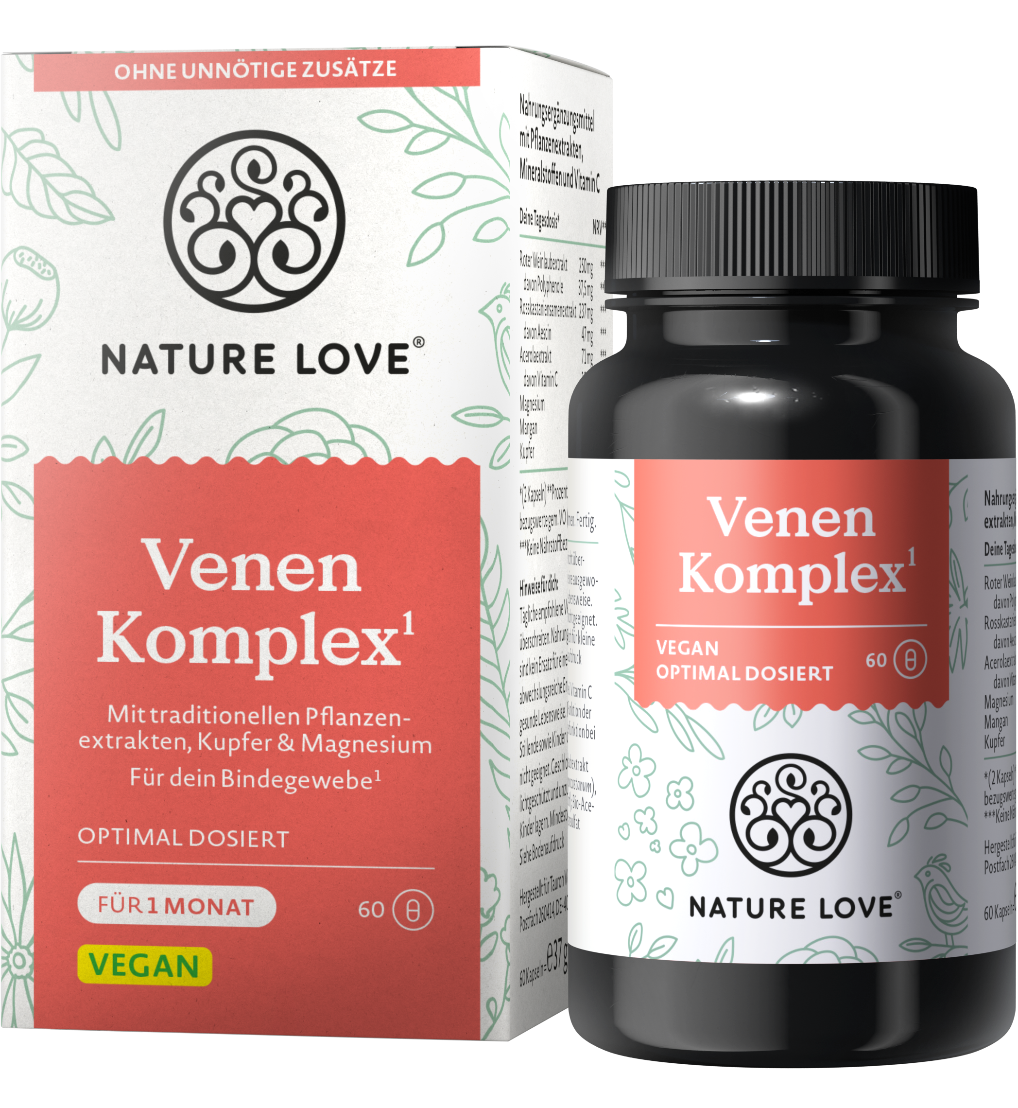 Ez a komplex kiváló minőségű tápanyagokkal támogatja Önt, ha hosszasan áll vagy sétál. A Nature Love prémium növényi kivonatokat, például vörös szőlő levelet és vadgesztenyét kombinál ebben a Véna komplexben, természetes acerolából származó C-vitaminnal, magnéziummal, mangánnal és rézzel. A készítményben nem használnak felesleges adalékanyagokat. A kapszulák formulája 100%-ban vegán.