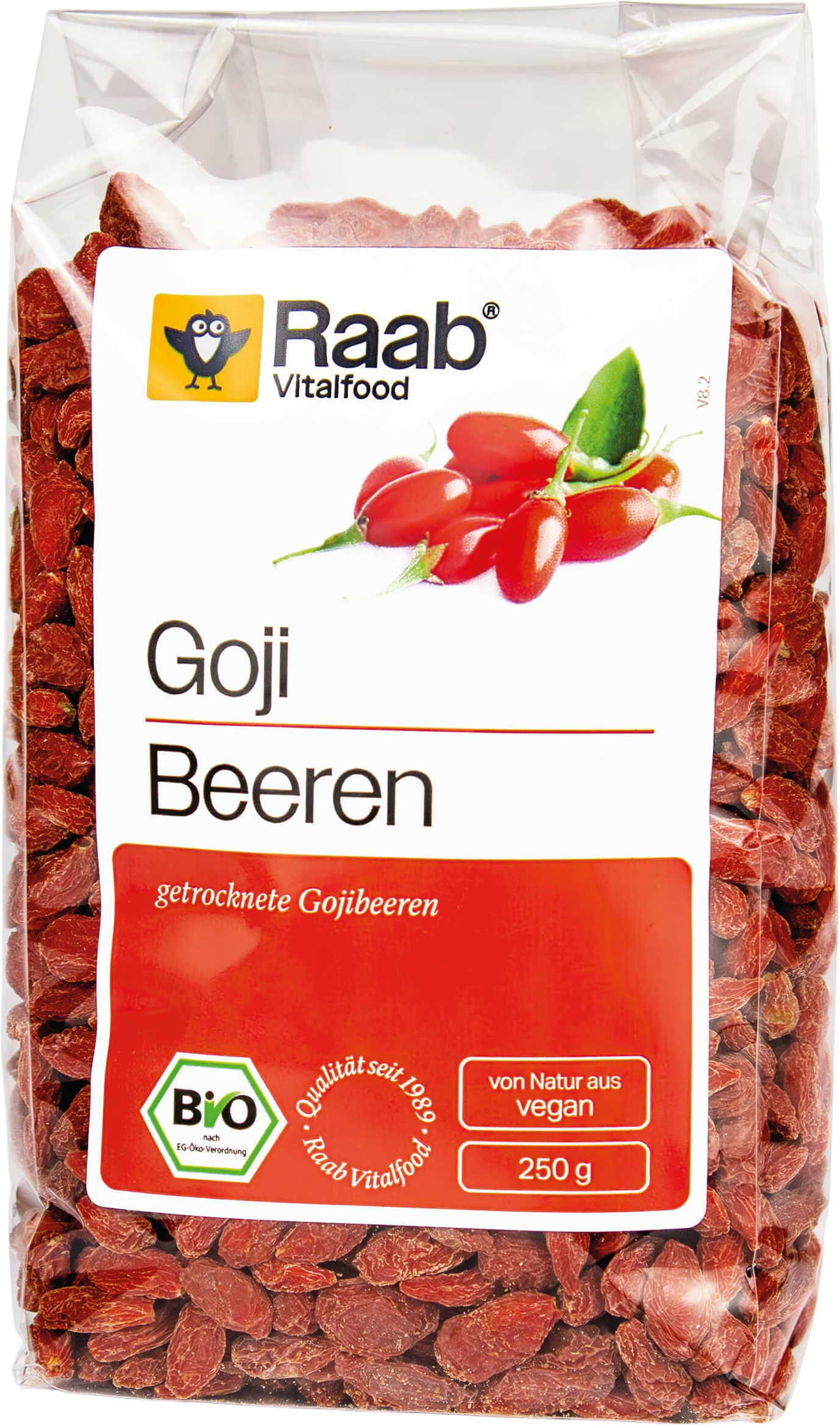 A Raab Vitalfood Bio goji bogyók a tibeti fennsíkról származnak, különösen lédúsak és ízletesek. Az értékes összetevők megőrzése érdekében a bogyókat a betakarítás után kíméletesen szárítják és kézzel csomagolják. A Raab Vitalfood Bio goji bogyók minden egyes szállítmányát egy független laboratórium teszteli maradványokra. Kizárólag a legmagasabb minőségű bogyókat használják fel.