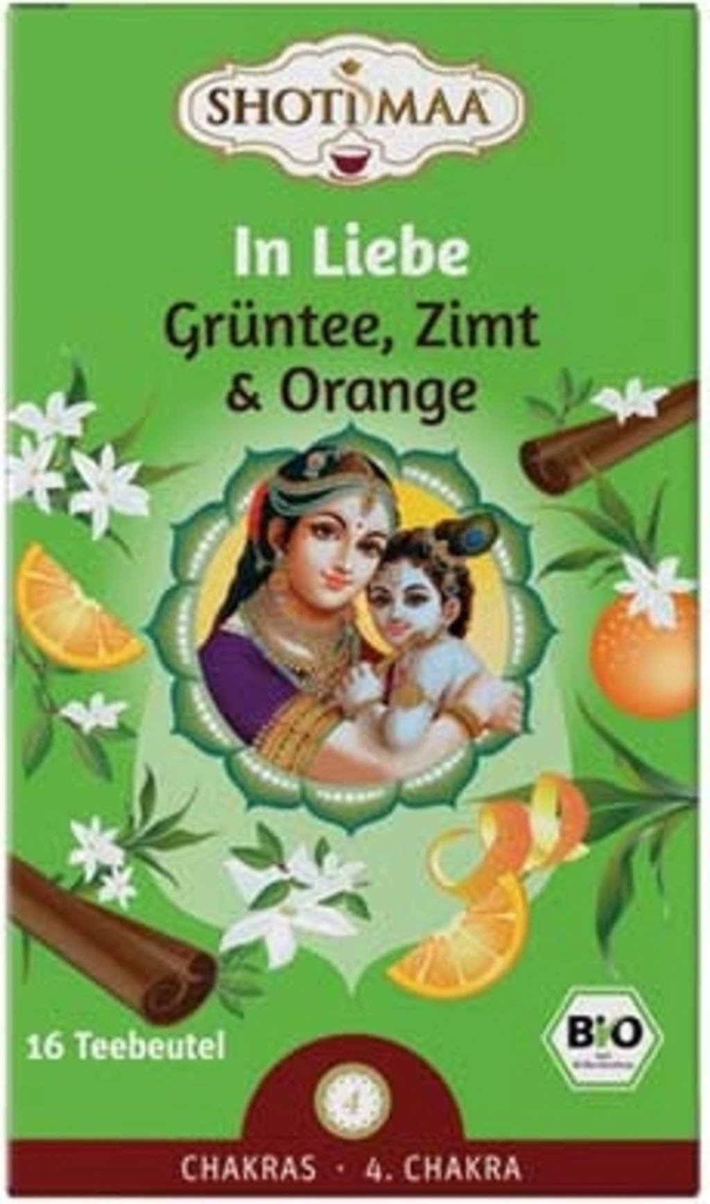 SHOTI MAA Bio "Szeretetben" tea – Zöld tea, fahéj és narancs, 16 teafilter (32 g)