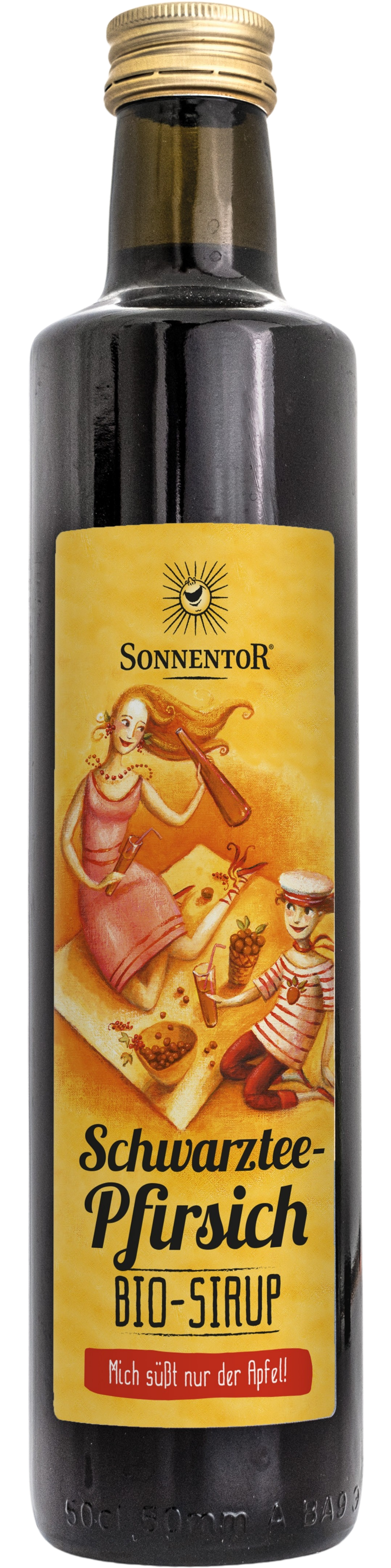 Sonnentor Bio Fekete tea - Őszibarack jeges tea Szirup, 500 ml