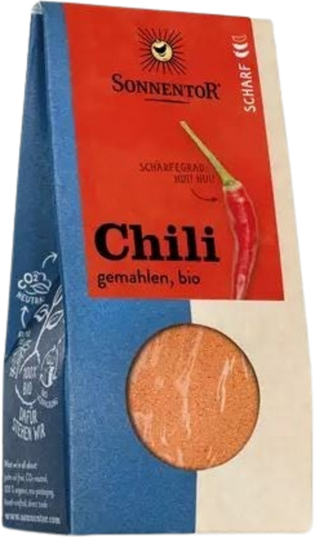 Számos ételt "megbolondít". A scoville skálán mért értéke a maximális 10-ből 6-os erősségű. A Sonnentor terméke erős narancsvörös színben pompázik és tüzesen csíp. Gyümölcsös illata enyhén édes jegyekkel párosul.