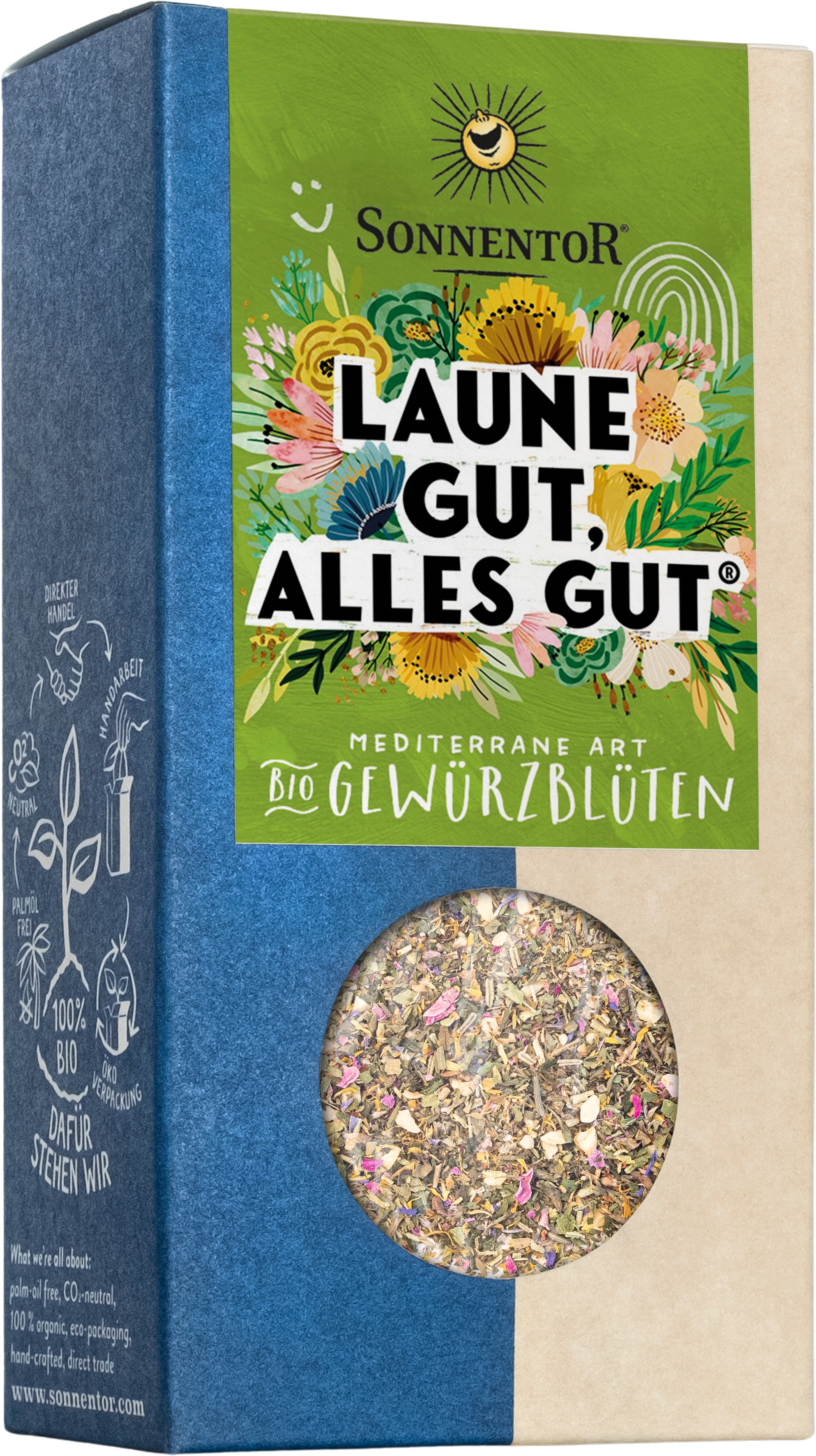 Sonnentor "Móka-kacagás" - bio virágfűszer-keverék, Csomag, 25 g