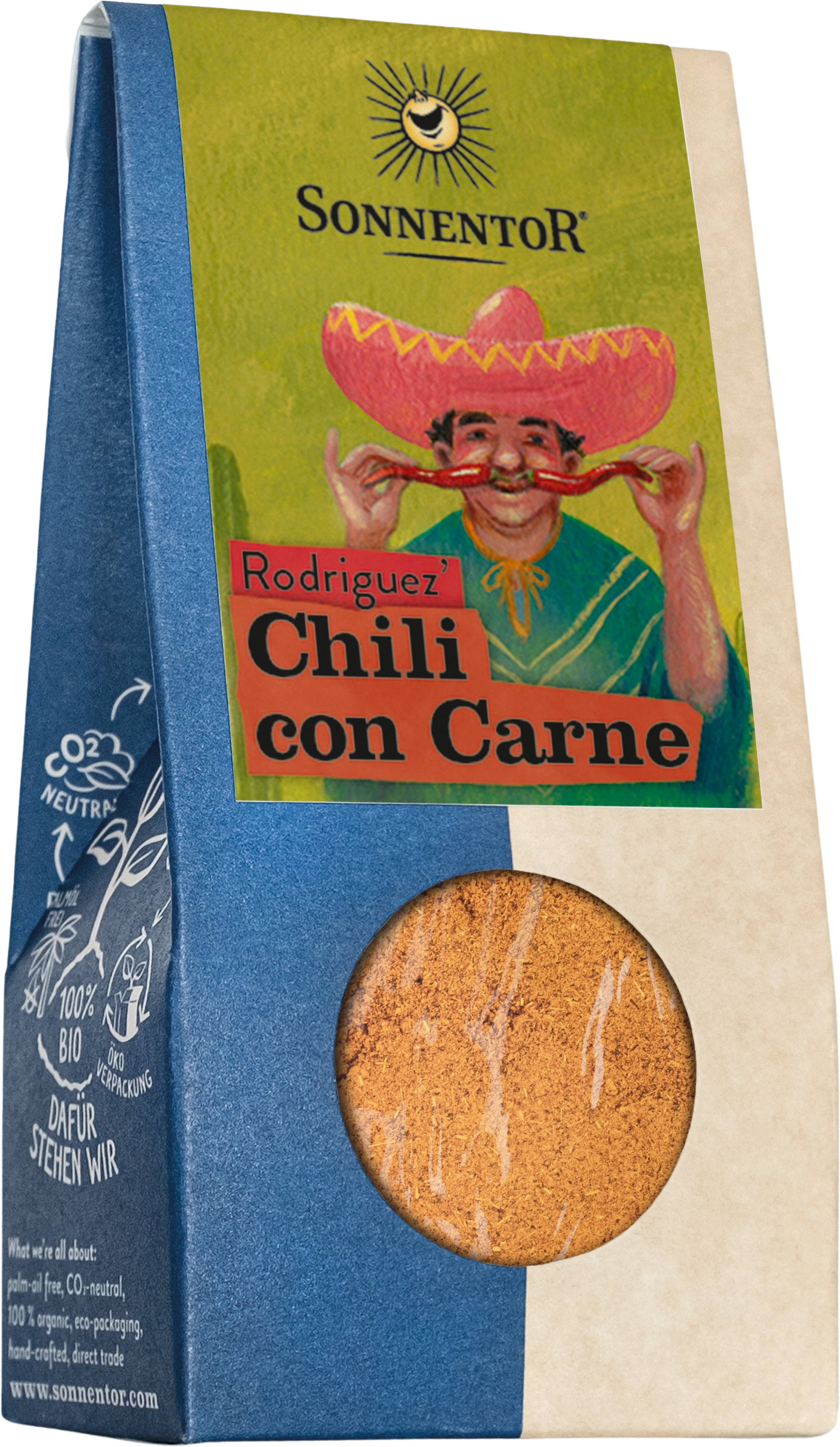 Rodriguez csípős fűszerkeverékével minden Chili con Carne igazi ízekre talál. A fűszeres-mexikói fűszerkeverék tüzes-csípős ízével változatosságot hoz a hazai ízek közé.